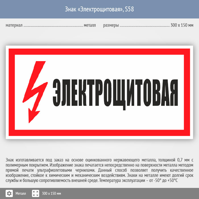 Знак (плакат) «Электрощитовая», S58 (металл, 300х150 мм) в Сургуте купить