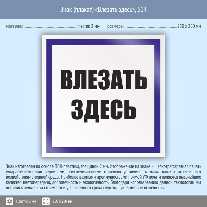 Знак (плакат) «Влезать здесь», S14 (пластик, 250х250 мм) в Сургуте купить