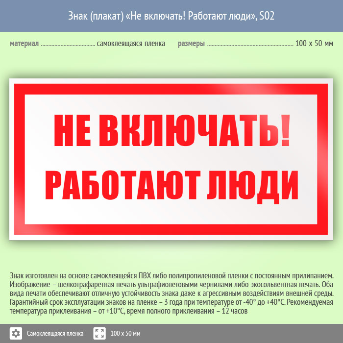 Знак (плакат) «Не включать! Работают люди», S02 (пленка, 100х50 мм) в Сургуте купить