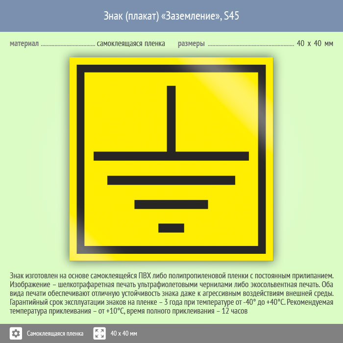 Знак (плакат) «Заземление», S45 (25 штук пленка, 40х40 мм) в Сургуте купить