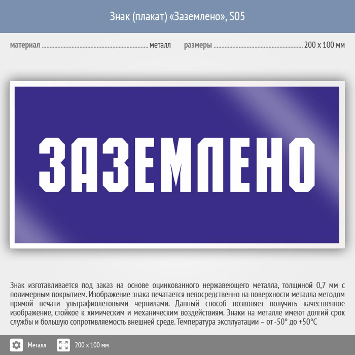 Знак (плакат) «Заземлено», S05 (металл, 200х100 мм) в Сургуте купить