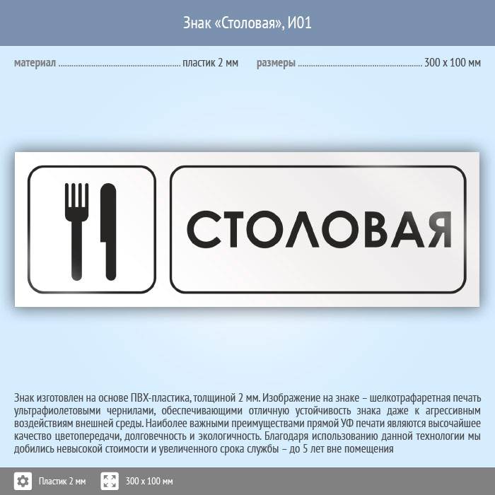 Знак «Столовая», И01 (пластик, 300х100 мм) в Сургуте купить