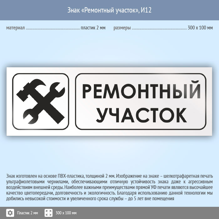 Знак «Ремонтный участок», И12 (пластик, 300х100 мм) в Сургуте купить