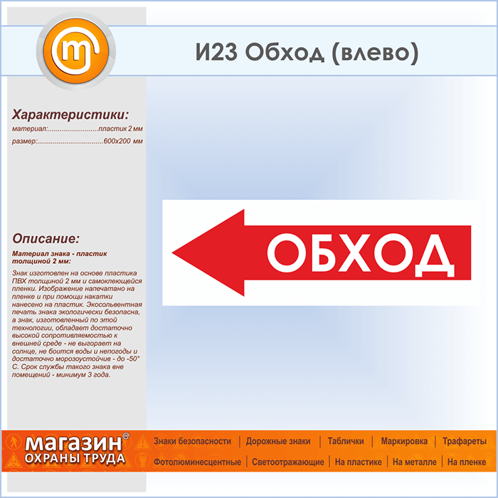 Знак «Обход (влево)», И23 (пластик, 600х200 мм) в Сургуте купить