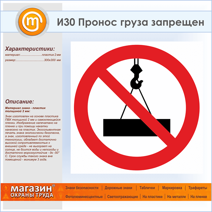 Знак «Пронос груза запрещен», И30 (пластик, 300х300 мм) в Сургуте купить