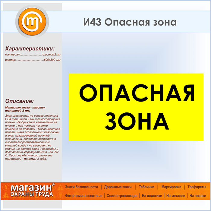 Знак «Опасная зона», И43 (пластик, 600х300 мм) в Сургуте купить