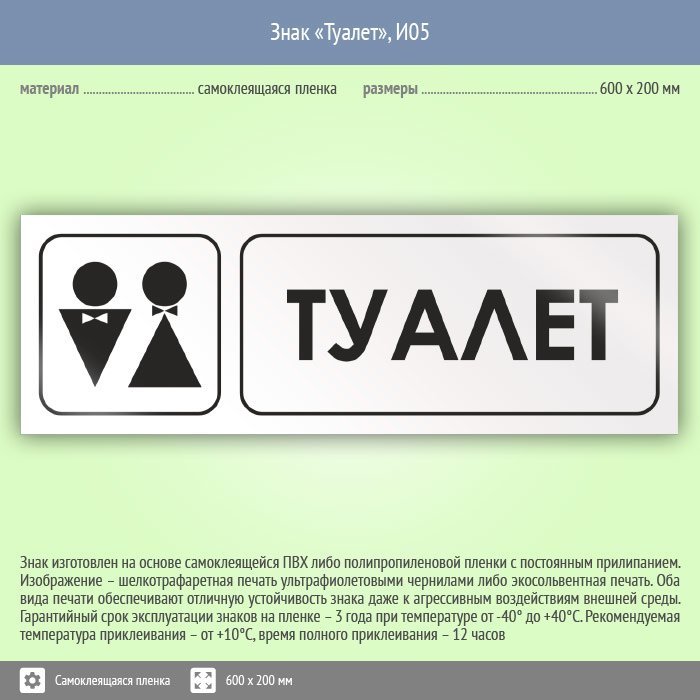 Знак «Туалет», И05 (пленка, 600х200 мм) в Сургуте купить