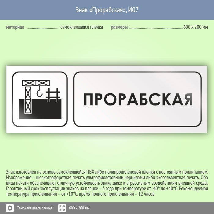 Знак «Прорабская», И07 (пленка, 600х200 мм) в Сургуте купить
