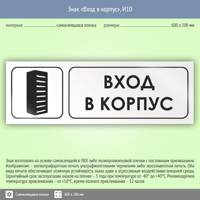 Знак «Вход в корпус», И10 (пленка, 600х200 мм) в Сургуте купить