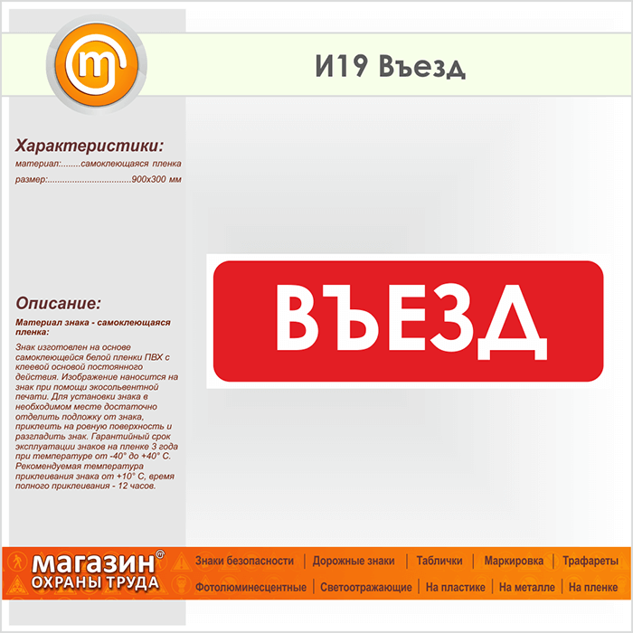 Знак «Въезд», И19 (пленка, 900х300 мм) в Сургуте купить
