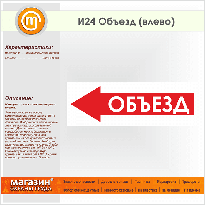 Знак «Объезд (влево)», И24 (пленка, 900х300 мм) в Сургуте купить
