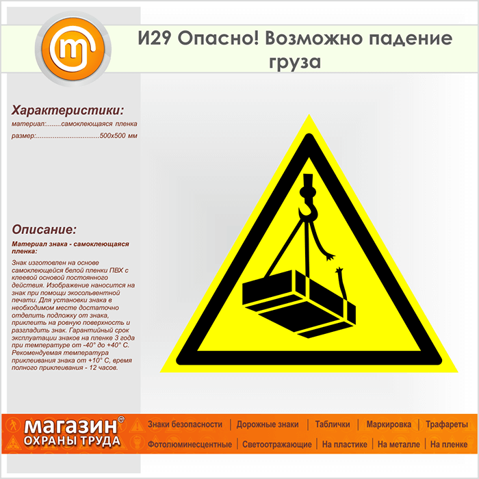 Знак «Опасно! Возможно падение груза», И29 (пленка, сторона 500 мм) в Сургуте купить