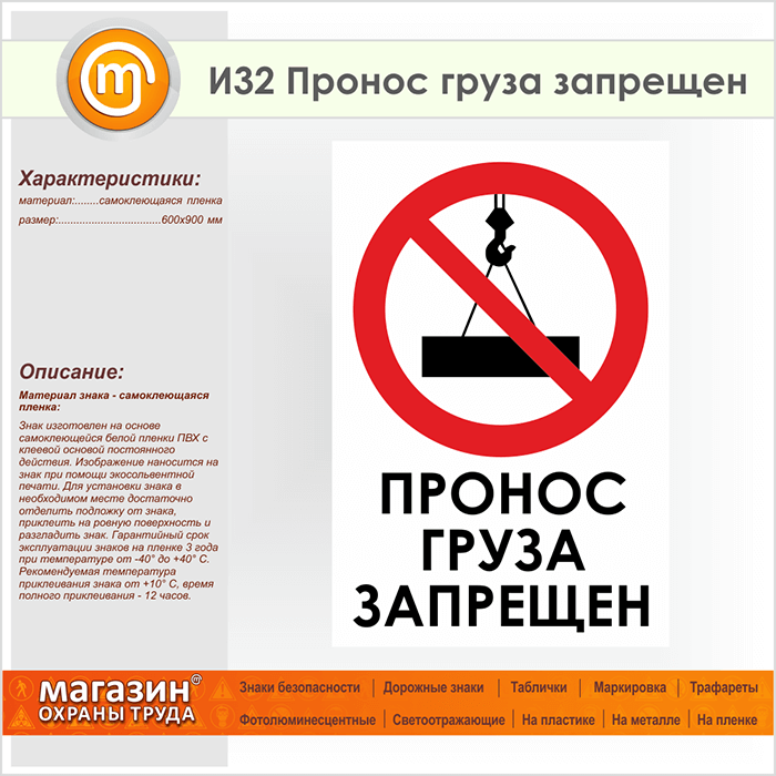 Знак «Пронос груза запрещен», И32 (пленка, 600х900 мм) в Сургуте купить