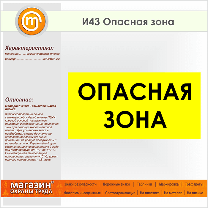 Знак «Опасная зона», И43 (пленка, 800х400 мм) в Сургуте купить