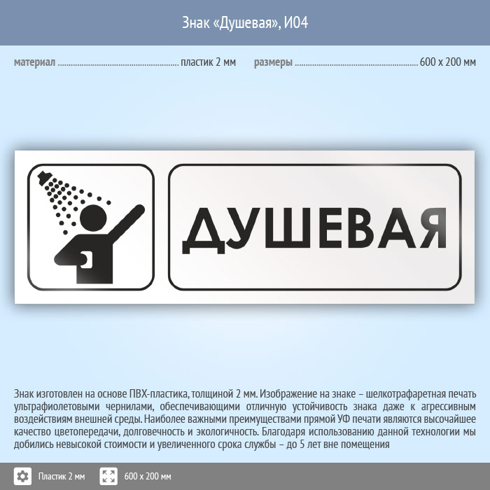 Знак «Душевая», И04 (пластик, 600х200 мм) в Сургуте купить