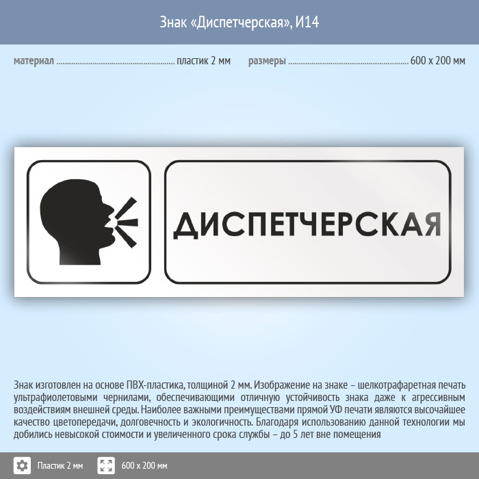 Знак «Диспетчерская», И14 (пластик, 600х200 мм) в Сургуте купить