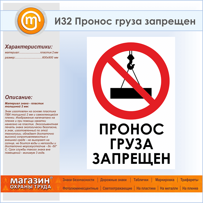 Знак «Пронос груза запрещен», И32 (пластик, 600х900 мм) в Сургуте купить