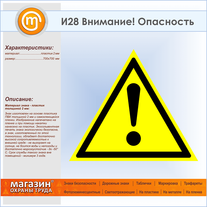 Знак «Внимание! Опасность», И28 (пластик, сторона 700 мм) в Сургуте купить