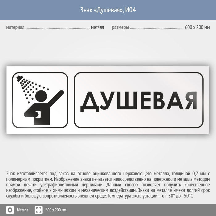 Знак «Душевая», И04 (металл, 600х200 мм) в Сургуте купить
