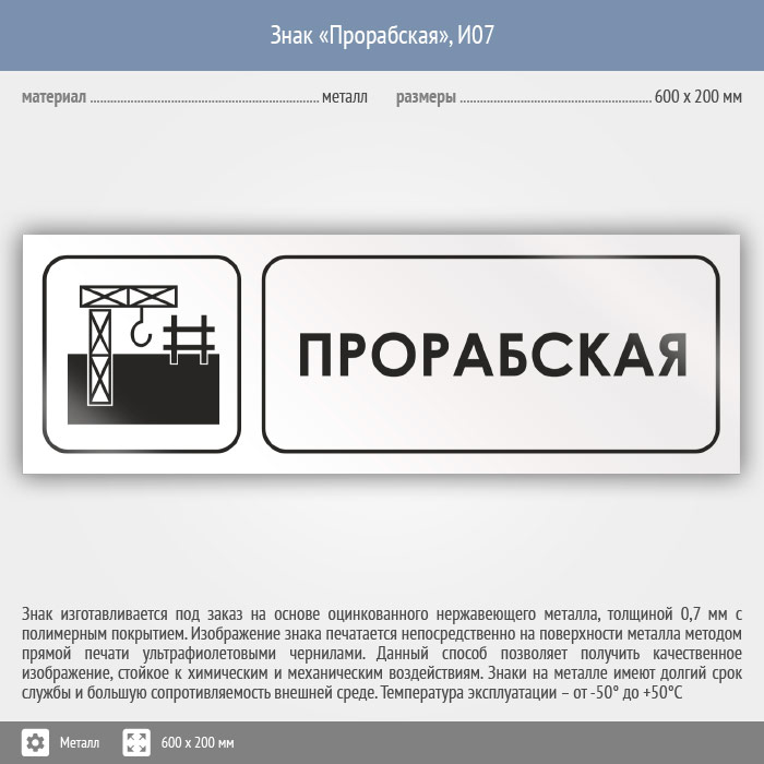 Знак «Прорабская», И07 (металл, 600х200 мм) в Сургуте купить