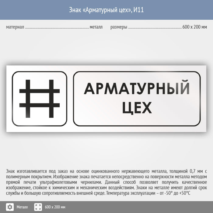 Знак «Арматурный цех», И11 (металл, 600х200 мм) в Сургуте купить