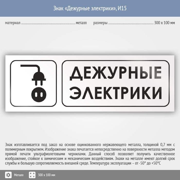 Знак «Дежурные электрики», И15 (металл, 300х100 мм) в Сургуте купить