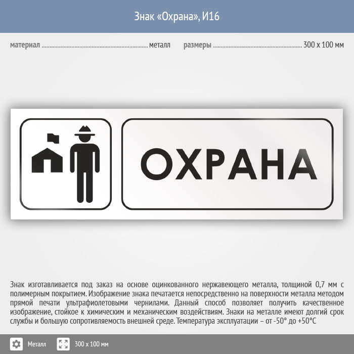 Знак «Охрана», И16 (металл, 300х100 мм) в Сургуте купить