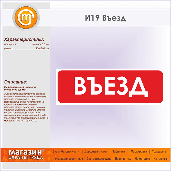 Знак «Въезд», И19 (металл, 900х300 мм) в Сургуте купить