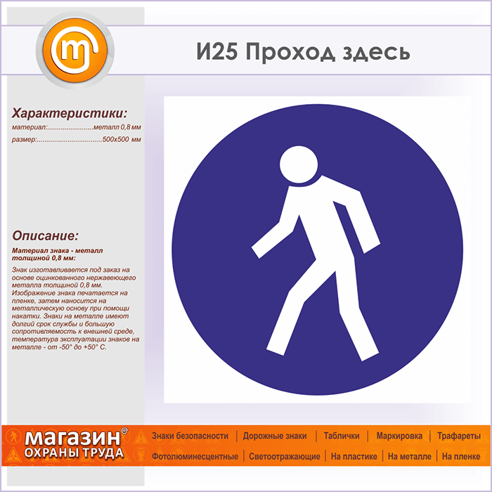 Знак «Проход здесь», И25 (металл, 500х500 мм) в Сургуте купить