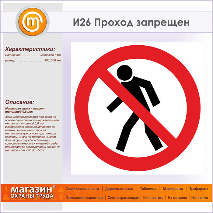 Знак «Проход запрещен», И26 (металл, 300х300 мм) в Сургуте купить