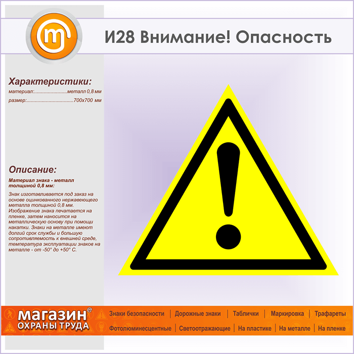 Знак «Внимание! Опасность», И28 (металл, сторона 700 мм) в Сургуте купить