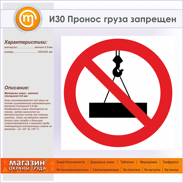 Знак «Пронос груза запрещен», И30 (металл, 500х500 мм) в Сургуте купить