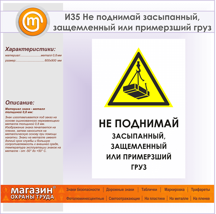 Знак «Не поднимай засыпанный, защемленный или примерзший груз», И35 (металл, 600х900 мм) в Сургуте купить