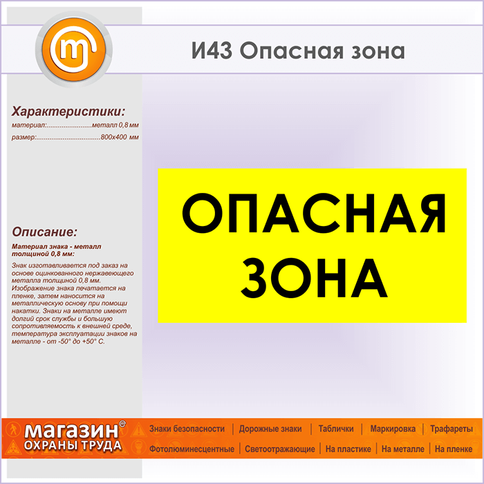 Знак «Опасная зона», И43 (металл, 800х400 мм) в Сургуте купить