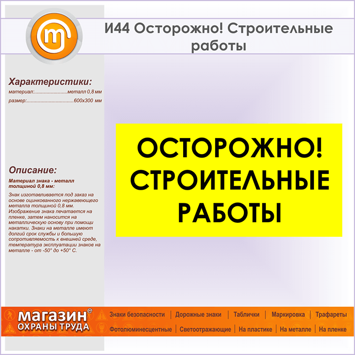 Знак «Осторожно! Строительные работы», И44 (металл, 600х300 мм) в Сургуте купить