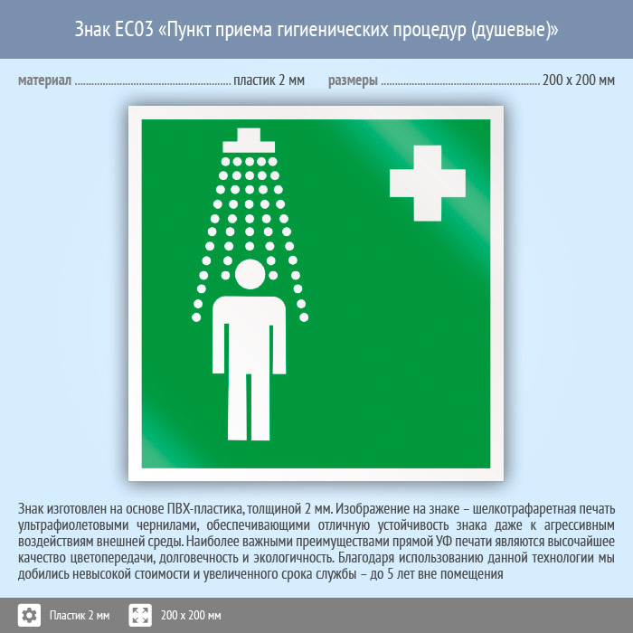 Знак EC03 «Пункт приема гигиенических процедур (душевые)» (пластик, 200х200 мм) в Сургуте купить