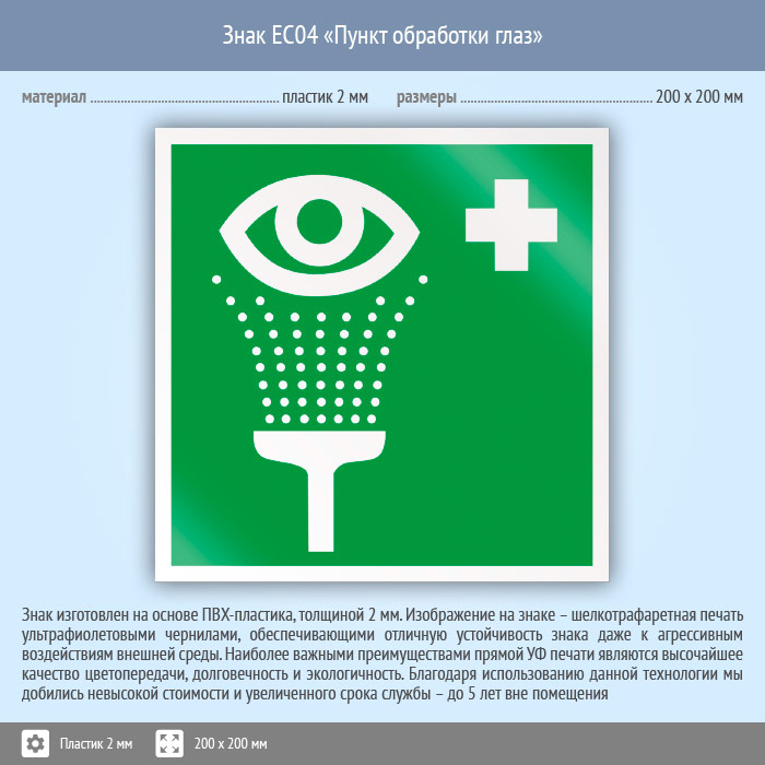 Знак EC04 «Пункт обработки глаз» (пластик, 200х200 мм) в Сургуте купить