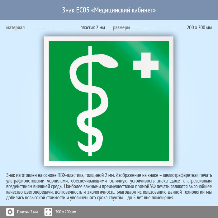Знак EC05 «Медицинский кабинет» (пластик, 200х200 мм) в Сургуте купить
