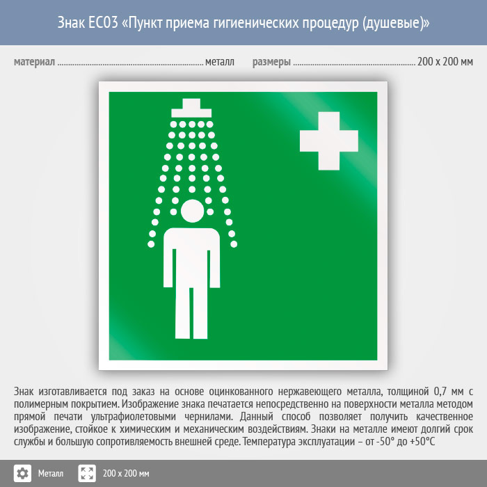 Знак EC03 «Пункт приема гигиенических процедур (душевые)» (металл, 200х200 мм) в Сургуте купить