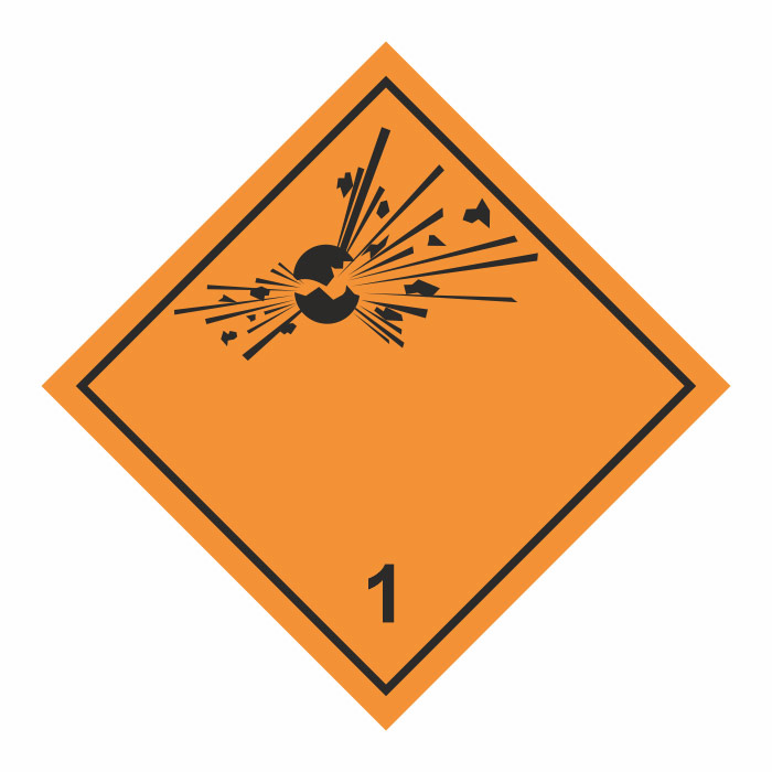 Знак перевозки опасных грузов «Класс 1. Взрывчатые вещества и изделия» (светоотражающий металл ламинированный, 300х300 мм) в Сургуте купить