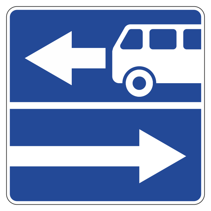 Дорожный знак 5.13.1 «Выезд на дорогу с полосой для маршрутных транспортных средств» (металл 0,8 мм, III типоразмер: сторона 900 мм, С/О пленка: тип А коммерческая) в Сургуте купить
