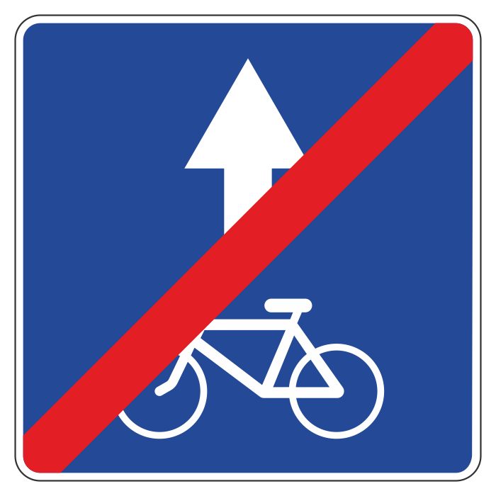 Дорожный знак 5.14.3 «Конец полосы для велосипедистов» (металл 0,8 мм, III типоразмер: сторона 900 мм, С/О пленка: тип А инженерная) в Сургуте купить