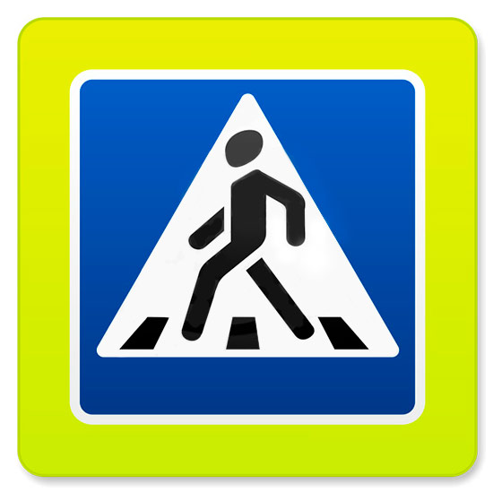 Дорожный знак 5.19.1д «Пешеходный переход» флуоресцентный (металл 0,8 мм, II типоразмер + кант: сторона 900 мм, С/О пленка: тип В алмазная) в Сургуте купить