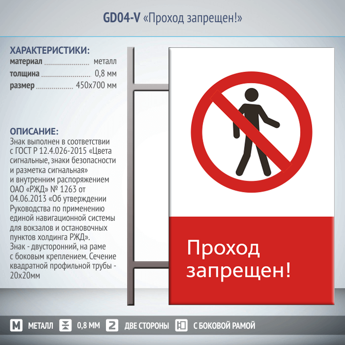 Знак «Проход запрещен!», GD04-V (двусторонний вертикальный, 450х700 мм, металл, на раме с боковым креплением) в Сургуте купить