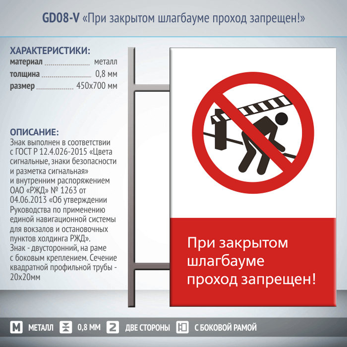 Знак «При закрытом шлагбауме проход запрещен!», GD08-V (двусторонний вертикальный, 450х700 мм, металл, на раме с боковым креплением) в Сургуте купить