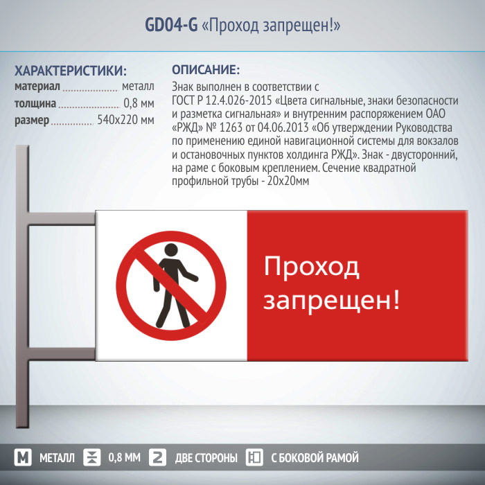 Знак «Проход запрещен!», GD04-G (двусторонний горизонтальный, 540х220 мм, металл, на раме с боковым креплением) в Сургуте купить