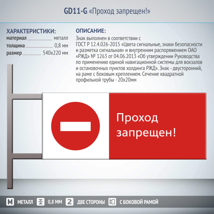 Знак «Проход запрещен!», GD11-G (двусторонний горизонтальный, 540х220 мм, металл, на раме с боковым креплением) в Сургуте купить