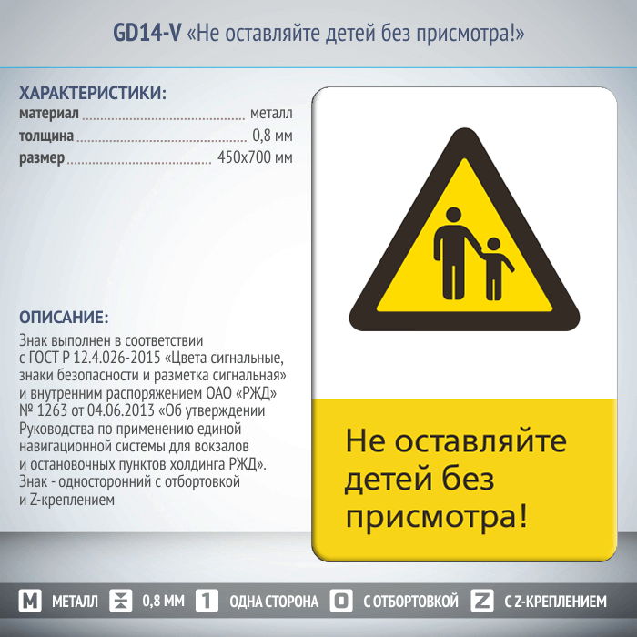 Знак «Не оставляйте детей без присмотра!», GD14-V (односторонний вертикальный, 450х700 мм, металл, с отбортовкой и Z-креплением) в Сургуте купить