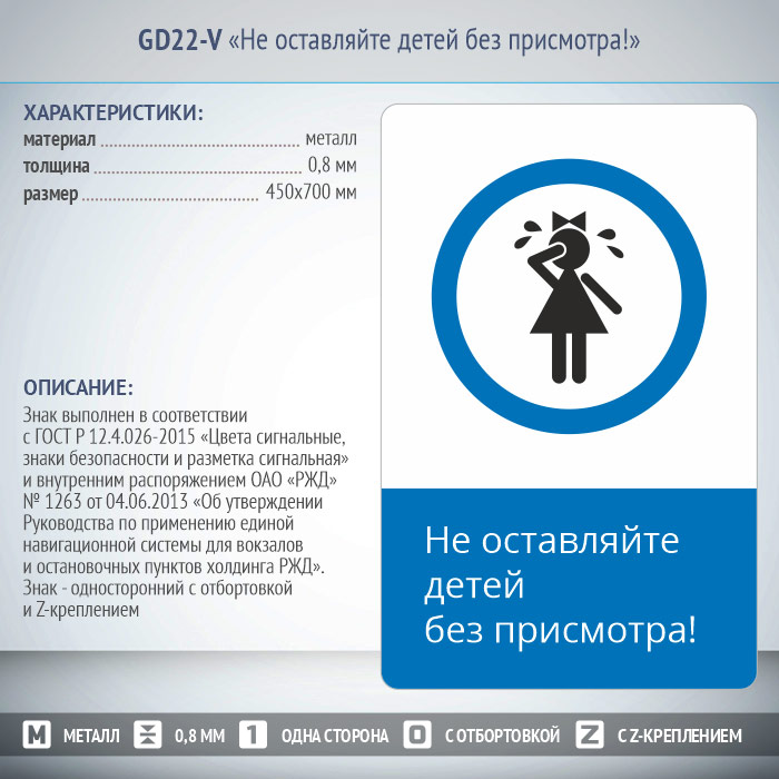 Знак «Не оставляйте детей без присмотра!», GD22-V (односторонний вертикальный, 450х700 мм, металл, с отбортовкой и Z-креплением) в Сургуте купить