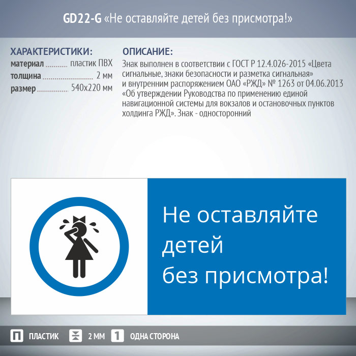 Знак «Не оставляйте детей без присмотра!», GD22-G (односторонний горизонтальный, 540х220 мм, пластик 2 мм) в Сургуте купить